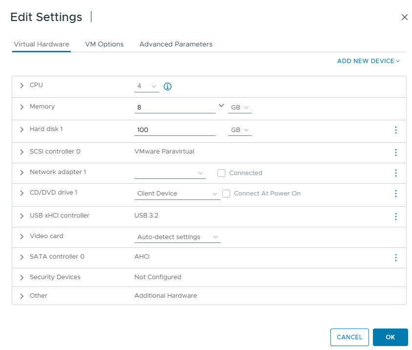 VMware vSphere üzerinde bir sanal makine oluşturulduğunda, yapılandırma sırasında en az bir adet sanal depolama denetleyicisi otomatik olarak eklenir. Sanal disk ile CD/DVD sürücüsü farklı denetleyicilere bağlanacak şekilde ayarlanırsa, sanal makine oluşturulduktan sonra yapılandırmada iki ayrı depolama denetleyicisi yer alabilir. Ayrıca sanal makine oluşturma aşamasında veya sonrasında, ek diskleri bağlamak için yeni depolama denetleyicileri eklemek de mümkündür.